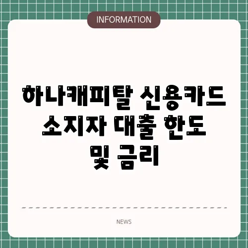 하나캐피탈 신용카드 소지자 대출 한도 및 금리