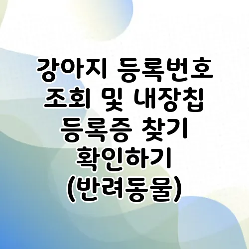 강아지를 키우는 것은 놀라운 경험이지만, 책임감 있는 주인으로서 반려동물을 제대로 관리하는 것은 매우 중요합니다. 특히, 귀하의 반려견이 등록되어 있거나 내장칩 등록증이 필요할 때, 이러한 사항을 확인하는 방법에 대해 알아보는 것이 중요합니다. 이 포스트에서는 강아지 등록번호 조회 방법과 내장칩 등록증을 찾는 방법, 더 나아가 반려동물 관리에 대해 심도 있게 다루어 보겠습니다. 함께 알아보러 가볼까요?